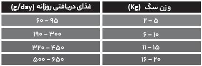 جدول مقدار مصرف روزانه: